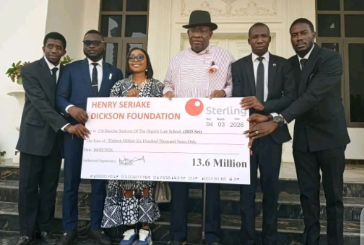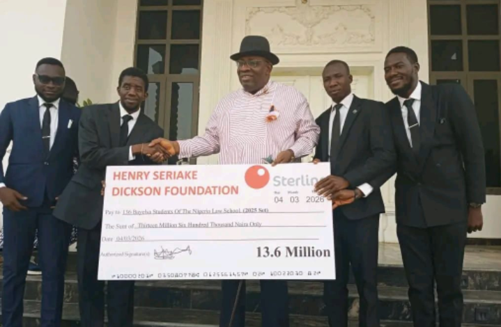 Former Bayelsa State Governor, Seriake Dickson, Senator representing Bayelsa West on Wednesday presented his annual educational grant to 136 students from Bayelsa State currently studying at the Nigerian Law School for the 2025 academic year.